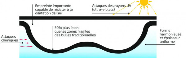 - La technologie Geobubble permet de créer des couvertures piscines plus durables et de bénéficier d’un maximum d’économies de ressources et d’énergie.