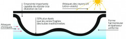 - Traitement UV et antioxydant afin d’éviter toute dégradation du polyéthylène par le chlore.