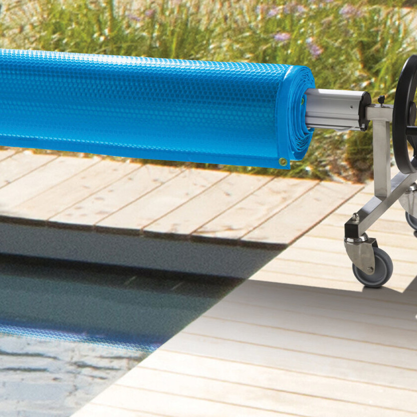 - Votre couverture solaire peut se ranger autour d’un enrouleur pour un rangement rapide et pour éviter de la dégrader à force de la déplier et de la plier.