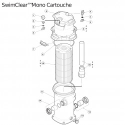 Le manomètre correspond à la pièce n°2 de l'éclaté du filtre à sable et à la pièce n°1 de l'éclaté du filtre à cartouche montrés en photo.